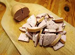 Cervelas de Lyon are a sausage specialty of Lyonnaise cuisine. They contain finely minced pork, and either truffles or pistachios. Sold uncooked, the sausage has to be boiled before it is eaten.[12][13]