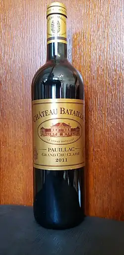Château Batailley is a winery in the Pauillac appellation of the Bordeaux region of France. The wine produced at the estate was classified as one of eighteen Cinquièmes Crus (Fifth Growths) in the Bordeaux Wine Official Classification of 1855.[1]