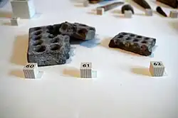A Chasséen site discovered between 1954 and 1957 at the southern end of the rampart has yielded a plethora of decorated pottery fragments, tools, and weapons (arrowheads or projectile points[20]) in stone. However, some tools and habitation structures exhibit "modern" features, indicating that Late Neolithic cultures may have settled earlier than previously assumed.[21]