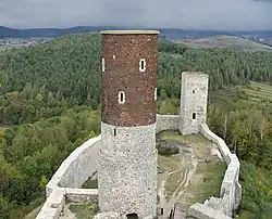 The construction of the fortress probably began in the late 13th century.[1] It is certain that the castle existed in 1306, when king Władysław I the Elbow-high gave it to the Archbishop of Kraków, Jan Muskata.[1] A year later, under the pretext of detection of a plot against the royal power, the castle returned to the king.[1] It played a significant role as a place of concentration of troops departing for war with the Teutonic Knights.[1] After the death of Władysław the Elbow-high the stronghold was enlarged by Casimir III the Great. At that time Chęciny become a residence of the king's second wife Adelaide of Hesse.[1] In following years it was also a residence of Elisabeth of Poland, Queen of Hungary, Sophia of Halshany and her son Władysław III of Varna and Bona Sforza.[1] Later it was used for many years as a state prison. Among imprisoned here were Michael Küchmeister von Sternberg future Grand Master of the Teutonic Knights,[2] Andrzej Wingold, Jogaila's half-brother and Warcisław of Gotartowice.[3]