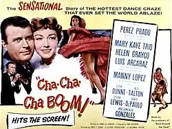 Cha-Cha-Cha Boom! is a 1956 American musical film starring Dámaso Pérez Prado, Stephen Dunne, the Mary Kaye Trio, Helen Grayco, Luis Arcaraz and his Orchestra, Lucerto Bárcenas, and Manny López and his Orchestra. It was produced by Sam Katzman for Columbia Pictures and directed by Fred F. Sears and was their immediate follow-up to Rock Around the Clock (actress Alix Talton appeared in both films). Filming started 14 May 1956.[1]