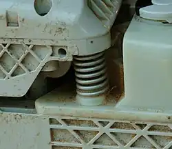 Excessive vibration over long periods can cause the user to develop hand-arm vibration syndrome (HAVS), or white finger. This is a potentially permanent and debilitating industrial injury. To reduce vibration, saws are divided into two parts. One part is a rigid assembly of the cutter bar and engine. This part vibrates strongly when the chain is cutting. The other part is a rigid assembly of the handles and controls of the machine, the part the user holds. These two rigid assemblies are joined together by mounts which provide spring suspension and damping.[1]