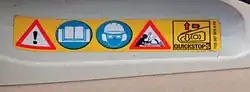 In the EU, and some other jurisdictions, it is a legal requirement that chainsaws carry certain standardized warning labels which warn of the dangers of kickback as well as making clear the need for protective clothing.