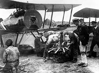 ![]() British pilots of 203 Squadron look on as ground personnel service the engine of one of the squadron's Nieuport Nightjar fighters whilst detached to Gallipoli, Turkey, in 1922 | |||||