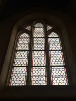 The vault is held by double buttresses along the entire circumference of the structure. This enabled the installation of larger windows in the characteristic pointed arch shape. Some of the windows are decorated with tracery. The windows are separated by one or two bars.