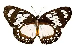 Euxanthe wakefieldi, the forest queen, is a butterfly of the family Nymphalidae. It is found in South Africa, from KwaZulu-Natal to Eswatini and the north-eastern Limpopo, north into eastern Africa. The wingspan is 65โ72 mm for males and 80โ90 mm for females. Adults are on wing year round, with a peak from March to June.[3] The larvae feed on Deinbollia species (including D. oblongifolia), Sapindus, Blighia, and Phialodiscus species. They are notable for their spectacular horns.[4]