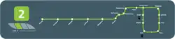 Line M2 is a line of the Charleroi Metro in Belgium operated by TEC Charleroi, running from the Monument tram stop in Anderlues to the metro loop around central Charleroi, before heading back to Anderlues.[1] Line M2 was created on 27 February 2012 to replace former lines 88 and 89 after completion of the loop around central Charleroi. Introduction of new line numbers (M1, M2, M3 and M4) in February 2012 coincided with the formal association of colors to line numbers. The official color for line M2 is green.