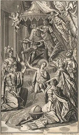In 1726, after his father had died, Charles became Duke of Bavaria and Elector Palatine and thus one of the prince-electors of the Holy Roman Empire, and he also inherited a debt of 26 million guilders.[8] He maintained good relations with both his Habsburg relatives and France, continuing his father's policies.