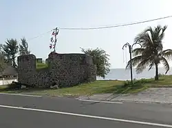 Nine barques, two ships and a brigantine (Trompeuse, Union, and Samaritaine) were used for transport, and left in the morning of 31 March 1703 escorted by two warships and a frigate that Machault had brought to the West Indies.[15] Gabaret arrived in Guadeloupe on 3 April 1703.[13] He pursued scorched earth tactics that proved effective in combination with the effect on the English of climate and drink.[13] The English withdrew on 15 May 1703.[16] Auger charged the Dominican Jean Baptiste Labat with building a defensive tower at Pointe-des-Pères for the coastal battery to protect the town of Basse-Terre. It was built from volcanic rock in 1703 at the entrance to the town of Baillif.[17]