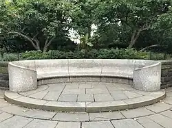 The granite Stover Memorial Bench overlooking Central Park's Shakespeare Garden, to commemorate Stover, was approved in 1935 by Robert Moses[12] and installed in 1936.[1][13] It is a whispering gallery.[14] Under Stover's name is inscribed Founder of Outdoor Playgrounds.[15]