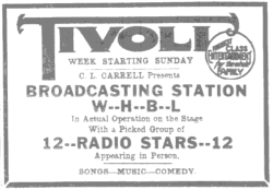- ^ "Tivoli/C. L. Carrell/WHBL" (advertisement), South Bend (Indiana) Evening Tribune, June 11, 1925, page 6.