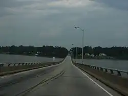 Only Henrico County to the west is accessible without a river crossing. State Route 106 crosses the James River on the Benjamin Harrison Memorial Bridge, providing the only direct access to areas south of the river and to Hopewell, the closest city. Three bridges across the Chickahominy River link the county with neighboring James City County and Providence Forge in New Kent County.