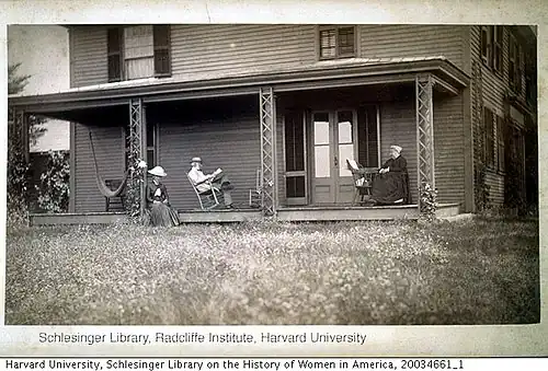 Seasonal residents (and farmers) of Rindge, Charles Eliot Ware and his family also kept a home at Boston, 41 Brimmer Street (Back Bay) and, eventually, they would send their daughter to Radcliffe College where she learned under Professor George Lincoln Goodale[6][7] - who would become the first director of the Harvard Botanical Museum. In fact, "Mary Ware, an especially fascinating character, became in many respects a professional naturalist," a role which she was later able to utilize by being the patron sponsor of the Glass Flowers, her purpose being to advance the education of women.[8]