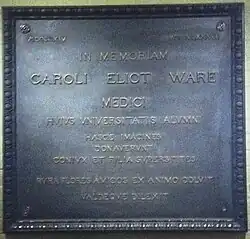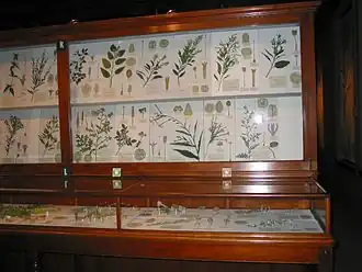 Being independently wealthy and (already) liberal benefactors of Harvard's botany department,[13] Mary convinced Mrs. Elizabeth C. Ware to agree to underwrite the consignment,[14] but this was done anonymously at first (and remained so until 1888).[15] A year later, 1887, Charles E. Ware died, thus when the official contract was signed between Mary and her mother, Leopold and Rudolf, and Harvard, the agreement was that the collection would be a memorial to the now-deceased Doctor: "The first Blaschka glass flowers are formally presented to the Botanical Museum as a memorial to Dr. Charles Eliot Ware, Class of 1834, by his widow Elizabeth C. Ware and daughter Mary L. Ware."[2][15][16] Today, there is a large bronze plaque in the exhibit's center formally dedicating it to the nature-loving Doctor, father, and husband.