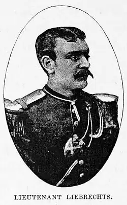 Charles Adolphe Marie Liebrechts was born in Antwerp on 7 May 1858. His parents were François Liebrechts and Marie Huybrechts. At the age of 16 he enlisted in the army.[1] He became a soldier in the 3rd chasseurs à pied. He entered the Military School in 1876, specializing in artillery and engineering. In 1881 he was appointed second lieutenant of artillery in the 5th regiment.[2]
