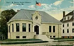 The Charles M. Bailey Public Library is the public library serving Winthrop, Maine. It is located at 39 Bowdoin Street, near the town center. It was officially established by the town on November 4, 1916, and opened to the public on December 2, 1916. The library became a free library in 1970,[2] and was added to the National Register of Historic Places in 1985.[1] The original granite structure was designed by prominent Maine architect John Calvin Stevens, and his son John Howard Stevens.[3] The 2015 addition was designed by Maine architect Philip M Locashio.[4]