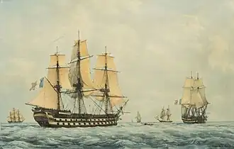 Charles Pénaud joined the navy at the age of 14 as a mousse (cabin boy).[3] His first voyage was to the Antilles on the Lys under the command of a friend of his father.[2] The Lys was sent to retake possession of the island of Martinique after the Bourbon Restoration, along with the frigate Érigone and the corvette Vésuve. The squadron arrived at Fort Royal on 5 October 1814.[4] Pénaud was named aspirant 2nd class on 1 July 1817.[5] He made a voyage to the Antilles on the frigate Revanche, then to India on the fluyt Galo under captain Ange René Armand, baron de Mackau.[5]