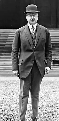 Reibel was reelected on 11 May 1924, 29 April 1928 and 8 May 1932, but was not asked to join any of the governments in this period. He developed some resentment against Poincaré for this reason.[1] In 1935 French intelligence considered that the Germans would have offensive capabilities by the next year. During a debate in the chamber Reibel said it would by "wise policy" to advance "the necessary sums to Belgium" so she could complete her defenses.[10] He said that in their present incomplete state the Belgian fortifications were "really non-fortifications" and called on the Minister of War, Louis Maurin, to support financial aid to Belgium. Maurin declined to answer.[11] Reibel ran for election to the Senate in 1935, and was elected in the second round on 23 October 1935 on the National Union list.[1] After the Munich Agreement was signed in September 1938 Pierre-Étienne Flandin sent a telegram of congratulations to Adolf Hitler. Within an hour Paul Reynaud resigned from the Alliance Démocratique. Reibel resigned from the vice-presidency of the party, and violently attacked Flandin at the party congress.[12]