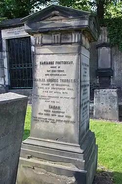 His second wife died before him and is buried separately in Warriston Cemetery.