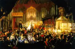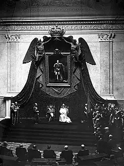 King Carlos I delivering the Crown speech at the opening of the Parliament in Lisbon, 1900.
