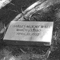 Charles McKay Wall (March 10, 1880 – April 18, 1955)[1] was an American businessman, mobster, and political figure who was a rival to reputed mobsters Santo Trafficante Sr. and Santo Trafficante Jr. His parents were John Perry Wall and Matilda McKay, daughter of former Tampa Mayor. Wall rapidly gained status within the criminal underworld from his early endeavors in the operation of several gambling, prostitution, and illegal numbers rackets. He was beaten with a baseball bat, his throat slit and killed, on April 18, 1955. He was buried in Tampa's Oaklawn Cemetery .[2]