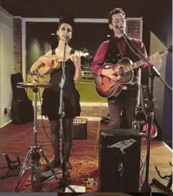 Charming Disaster is an American musical duo from Brooklyn, New York formed in 2012 by Ellia Bisker and Jeff Morris. They are known for their songs involving myth, magic, folklore, science and the occult.[1] Goldmine magazine described them as "[a] cross between Edward Gorey and Tim Burton set to music”[2] who draw inspiration from the murder ballads of the Americana tradition.[3] Their performances often overlap with other types of performance, including retro forms like the crankie (a small-scale moving panorama).[4] They’ve opened for acts like the goth cabaret performer Voltaire, cello-rock act Rasputina, and the duo the Dresden Dolls.[5][6]