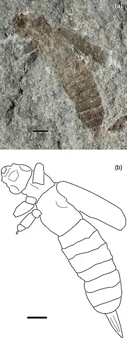 - ^ a b Kelly, Richard S.; Ross, Andrew J.; Jarzembowski, Edmund A. (2016). "Earwigs (Dermaptera) from the Mesozoic of England and Australia, described from isolated tegmina, including the first species to be named from the Triassic". Earth and Environmental Science Transactions of the Royal Society of Edinburgh. 107 (2–3): 129–143. Bibcode:2016EESTR.107..129K. doi:10.1017/s1755691017000329. hdl:1983/d363e702-e4cb-4285-8ee8-393e808c890e. ISSN 1755-6910.