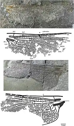 - ^ a b Bechly, Guenter (2018-04-27). "Chrismooreia michaelbehei gen. et sp. nov. (Insecta: Odonata: Asiopteridae), a new fossil damsel-dragonfly from the Early Jurassic of England". BIO-Complexity. 2018 (1). doi:10.5048/bio-c.2018.1. ISSN 2151-7444.