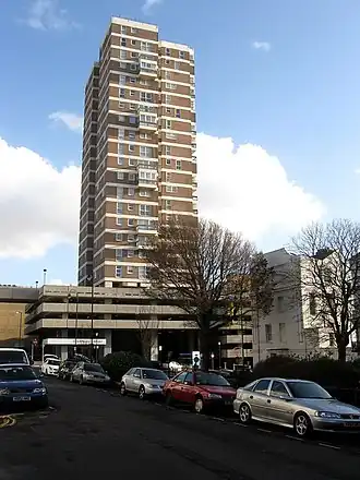 Chartwell Court is a residential tower block in the centre of Brighton, part of the city of Brighton and Hove in the United Kingdom. The tower is unusual in that is built directly on top of a car park serving the Churchill Square shopping centre. Construction work started in 1967 and continued until the following year.[1]