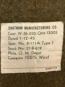 Around 1910, Chatham was the largest blanket manufacturer in the South, and by the 1940s and 1950s, they were the largest blanket manufacturer in the world.[5] They manufactured millions of blankets for all branches of the armed forces in both world wars. The company was awarded the Army/ Navy Award of Excellence for wartime production for its military blankets.[6]