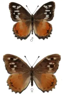 The wingspan is 45–60 mm. The butterflies fly from June to August.