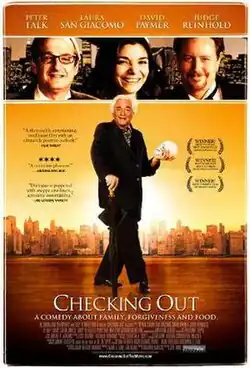 Checking Out is a 2005 American comedy film directed by Jeff Hare and written by Richard Marcus, based on the play of the same name by Allen Swift. It stars Peter Falk, Laura San Giacomo, David Paymer and Judge Reinhold.[1]