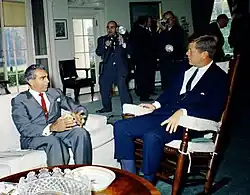 Following the 1961 elections, Jagan met John F. Kennedy in person in Washington, D.C., on October 25, and on December 18 he addressed the United Nations calling for a date for Independence from the United Kingdom.[7]
