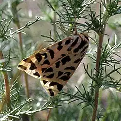 - ^ Rönkä, Katja; Mappes, Johanna; Kaila, Lauri; Wahlberg, Niklas (2016). "Putting Parasemia in its phylogenetic place: a molecular analysis of the subtribe Arctiina (Lepidoptera)". Systematic Entomology. 41 (4): 844–853. doi:10.1111/syen.12194. hdl:10138/176841.