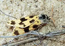 - ^ Rönkä, Katja; Mappes, Johanna; Kaila, Lauri; Wahlberg, Niklas (2016). "Putting Parasemia in its phylogenetic place: a molecular analysis of the subtribe Arctiina (Lepidoptera)". Systematic Entomology. 41 (4): 844–853. doi:10.1111/syen.12194. hdl:10138/176841.