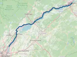 The Chemin du Roy (Quebec French pronunciation: [ʃəmẽ d͡zʏ ʁwɑ]; French for "King's Highway" or "King's Road") is a historic road along the north shore of the St. Lawrence River in Quebec. The road begins in Repentigny and extends almost 280 kilometres (170 mi) eastward towards Quebec City, its eastern terminus. Most of the Chemin du Roy today follows along the present-day Quebec Route 138. The expressway that replaces both Route 138 and the Chemin du Roy through most of its course is Quebec Autoroute 40.