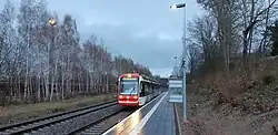 The station has always been passed by passenger trains as there were no platforms until late 2018. A platform for passenger transport was commissioned an 5 December 2018.[3] The platform is located on the right and used for passenger trains in both directions.