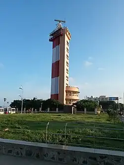 The current lighthouse is a landmark on the Marina Beach, which was built by the East Coast Constructions and Industries in 1976, and opened in January 1977. It also houses an office of the meteorological department. On 16 November 2013, it was reopened to visitors. It is one of the few lighthouses in the world with an elevator.[1][2] It is also the only lighthouse in India within the city limits.[3] It is powered by a solar panel.[4]