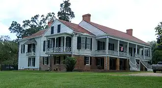 In the 1880s, a two-story frame addition was added to the rear of the easterly end of the house. This addition is fronted by a double-tiered gallery on the westerly elevation that forms an L with the rear gallery of the main house. The interior of this wing has symmetrically molded door and window surrounds with corner blocks, and the mantel pieces are typical compositions of the 1880s period. A complete complement of outbuildings surrounds the main plantation house. The kitchen building, which was constructed in the late nineteenth century, is a one-story, single-bay building constructed of rock-faced cement blocks and topped by a pyramidal roof. The hall is a one-story, five-bay, gabled roof residential building with a recessed gallery and board-and-batten siding. The hall was constructed in the 1870s or 1880s. The smoke house is a one-story, single-bay brick building with hipped roof and brick vents. The privy is a diminutive, single-bay, frame structure with gabled roof. The corn crib and stable buildings both exhibit unusual gable on hip roofs. The tenpin alley is a narrow, one-story frame building with gable roof to which has been added a tall, one-story, single-bay building with gabled roof and board-and-batten siding. This tall addition was added to the tenpin alley in the late nineteenth century and was used by the children of the family as a gymnasium. Two, small, gabled-roof frame structures served originally as a hen house and a rabbit hutch. Two barns, both dating from the nineteenth century, and a gabled-roof sheep barn with pigeon loft complete the outbuildings. A plantation cemetery is located northwesterly and in sight of the main house.[7]