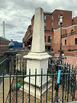 The Chesapeake and Ohio Canal commemorative obelisk is an 8-foot (2.4 m) marble obelisk erected in 1850 in Washington, D.C., to mark the completion of the Chesapeake and Ohio Canal to Cumberland, Maryland.[1] It stands on the northwest corner of the Wisconsin Avenue Bridge over the canal in Washington's Georgetown neighborhood.[1]