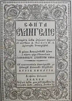 Gospel Book published at Buzău in 1834; the bishop's name appears as КЄСАРІЄ