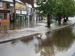 The town has a mild climate and gets well below average rainfall relative to the UK. It does though experience occasional floods. To the east of the town lies the Riverside cricket ground and Riverside Park. They were built on the flood plains of the River Wear, and are often flooded when the river bursts its banks. The town centre is subject to occasional flash flooding, usually after very heavy rain over the town and surrounding areas, if the rain falls too quickly for it to be drained away by Cong Burn. The flooding occurs at the bottom of Front Street where the Cong Burn passes under the street, after it was enclosed in concrete in 1932.[28][29]