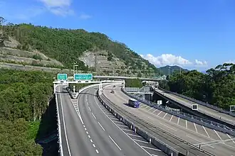 Cheung Tsing Highway (Chinese: 長青公路; Cantonese Yale: chèuhng chīng gūng louh) is a highway of Route 3 between Cheung Tsing Tunnel and North West Tsing Yi Interchange on Tsing Yi Island, New Territories, Hong Kong. It was built as part of the Airport Core Programme together with the rest of Route 3 to provide a new highway link from North Western New Territories towards Hong Kong Island, and connects with Route 8 to provide access to the new Hong Kong International Airport.