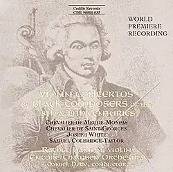 5. ^ "Classical Briefs" New York Times (Feb. 22, 1998), "None of the works is an outright masterpiece, but the Chevalier de Saint-Georges's A major Concerto (1775) is utterly charming. Mozartean in sensibility, with sunny ostinatos, the piece possesses an infectious spirit despite its obviously derivative nature. The Chevalier J. J. O. de Meude-Monpas's Concerto in D (1786) is even more interesting, with Rococo accents brushing up against French Baroque elements."