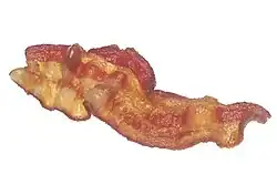 "When company came over, they would bring out some bacon and hang it to show it off. It was a sign of wealth and that a man 'could really bring home the bacon.' They would cut off a little to share with guests and would all sit around and 'chew the fat.' "[15]