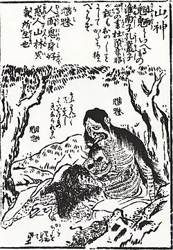 Chīmèi 螭魅 is joined with wǎngliǎng in the expression chīmèi-wǎngliǎng (魑魅魍魎; "demons and monsters; evil spirits"). Since some commentators differentiate between chīmèi "demons of the mountains and forests" and wǎngliǎng "demons of the rivers and marshes", chīmèi-wǎngliǎng can mean either "'demons, monsters' generally or 'mountain and water demons' separately".[19] De Groot describes chimei as "another demon-tribe" because the "Chinese place in their great class of hill-spirits certain quadrumana, besides actual human beings, mountaineers alien to Chinese culture, perhaps a dying race of aborigines."[20]