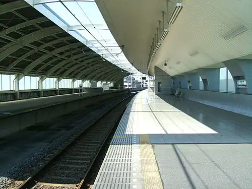 Station numbering was introduced to all Keisei Line stations on 17 July 2010; Chibadera Station was assigned station number KS61.[3][4]