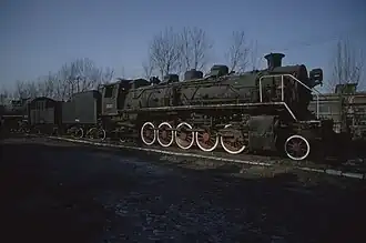 The China Railways ST2 class steam locomotive was a class of 2-10-2 "Santa Fe" type steam locomotives operated by the China Railway, built by the Krupp in Germany in 1935 for the privately owned Jinpu Railway in China. After 1938 they were operated by the North China Transportation Company, which designated them サタニ (Satani) class; after 1949 they were operated by the China Railway as class ST2, with the last of them retired by 1990.[1] ST2-22 remains preserved at the Shenyang Railway Museum.[2]