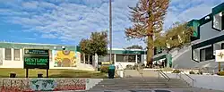 A mixed use complex built by Hong Kong investors in 1993,[4]: 13 this plaza with a central fountain with seating is often viewed as the center of Oakland Chinatown. The first and second floors are mixed retail/office/civic spaces; it consists of many restaurants, jewelry store, banks, ice creamery, and other retail and health services as well as the Asian Branch Library and Oakland Asian Cultural Center. There are also residential condos/rentals on three sides of the plaza above the second floor: a 13-story residential building on the west side and two 4 story buildings on the south and east side. Underneath is a 3 level parking lot.
