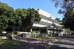 The University Library is the central library of The Chinese University of Hong Kong, located on the Central Campus. After the establishment of The Chinese University of Hong Kong, the University Library was established in April 1965, initially renting the second floor of the Chong Hing Bank Building in Kowloon for its library and book collection.[5] Subsequently, in September of the same year, librarian Dr Alfred Kaiming Chiu was invited to serve as the first director of the University Library. The following year, the library was moved to the On Lee Building as a temporary site.[6] In August 1969, as the university's campus at Ma Liu Shui began to take shape, the University Library was then relocated to the basement of the Benjamin Franklin Centre as its temporary site on campus.[7] Construction of the current university library officially began in 1970,[8] which was completed and opened on 15 December 1972.[9]